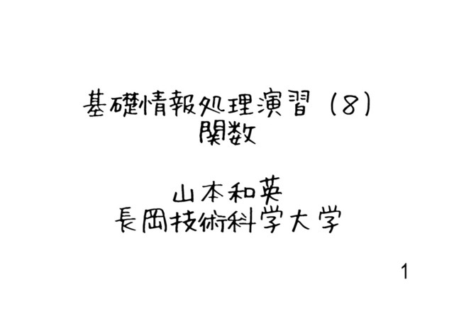 基礎情報処理演習 (8) 関数 山本和英 長岡技術科学大学 1