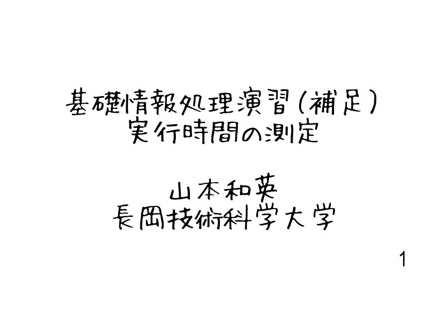 基礎情報処理演習(補足) 実行時間の測定 山本和英 長岡技術科学大学 1