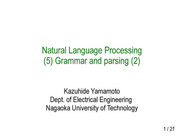 algorithm. Also called as CKY algorithm. • is very efficient; a bottom-up dynamic programming parsing algorithm. • can be used if all rules are written in Chomsky normal form / チョムスキー標準形 : – A → BC or A → α where A, B, and C are non-terminals, and α is terminal. (I will demonstrate how it works.)