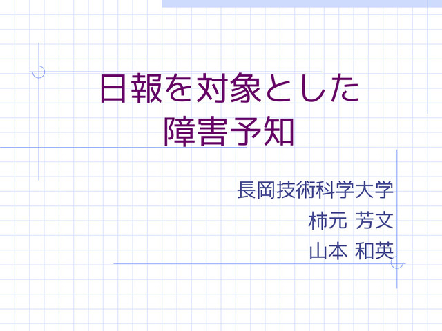 日報を対象とした 障害予知 長岡技術科学大学 柿元 芳文 山本 和英