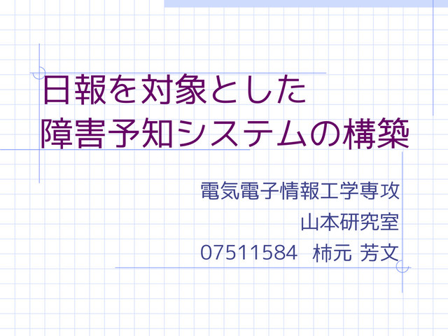 柿元 芳文. 日報を対象とした障害予知システムの構築. 長岡技術科学大学修士論文 (2009.3)