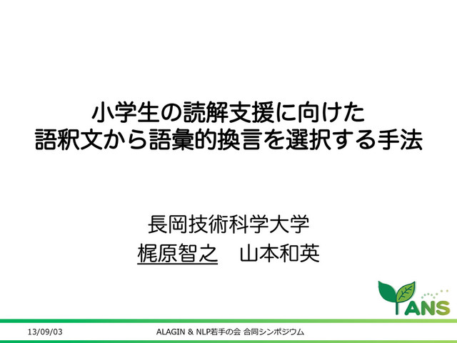 NLP若手の会 第8回シンポジウム, (発表23) (2013.9)