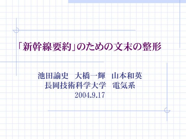 「新幹線要約」のための文末の整形 池田諭史 大橋一輝 山本和英 長岡技術科学大学 電気系 2004.9.17