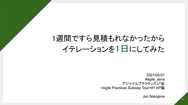 1週間ですら見積もれなかったから イテレーションを1日にしてみた 2021/02/21 #agile_devs アジャイルプラクティス LT会 <Agile Practices Subway Tour>#1