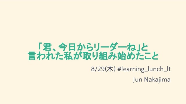 「君、今日からリーダーね」と 言われた私が取り組み始めたこと 8/29(木) #learning_lunch_lt Jun Nakajima