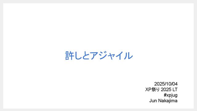 許しとアジャイル 2025/10/04 XP祭り 2025 LT #xpjug Jun Nakajima