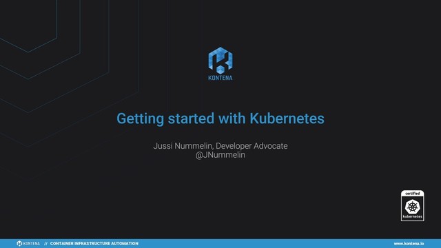 Nummelin Name Current Work @jnummelin / jnummelin Twitter / Github Developer Advocate @ Kontena, Inc. Previous Tecnotree, Digia, Tieto, Nokia, … Bio All-around handyman on technical topics. Passionate developer and solution architect Working with containers & microservices for 4+ years Avid fly-fisher