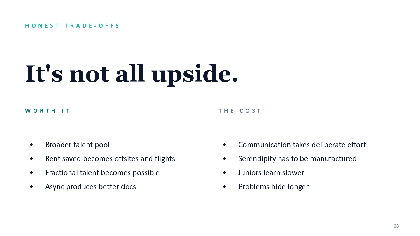 A practical workshop on building remote-first teams, delivered at IDEA Week 2026 in South Bend, Indiana.