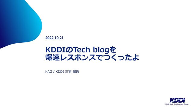 KDDIのTech blogを 爆速レスポンスでつくったよ 2022.10.21 KAG / KDDI 三宅 潤也