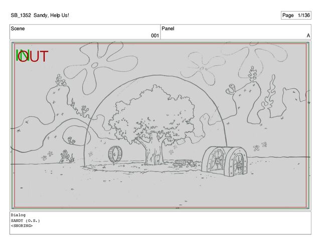 Plussing board for the opening scene where Sandy wakes up, drinks some coffee, and observes a biology project she is working on: a small seed in a glass pod, which has been growing for months. SpongeBob suddenly flies into her room and asks Sandy for help because his alarm clock is broken.