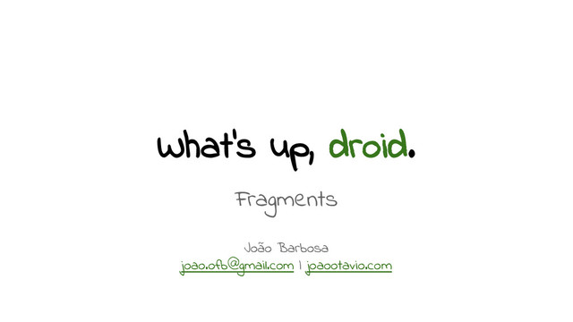 Short speech for the Mobile Computing class at Fontys Hogescholen, about Fragments in Android Applications.