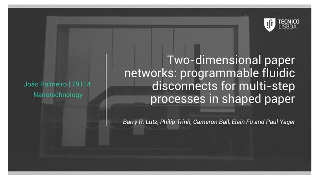 B. R. Lutz, P. Trinh, C. Ball, E. Fu, and P. Yager. “Two-dimensional paper networks: programmable fluidic disconnects for multi-step processes in shaped paper.” In: Lab Chip 11 (24 2011), pp. 4274–4278. DOI: 10.1039/C1LC20758J. URL: http://dx.doi.org/10.1039/C1LC20758J.