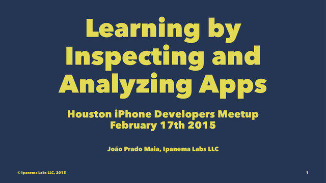 We discuss how to learn by inspecting and analyzing App Store applications with a simple set of instructions. We will look at how to use jailbreaking for education purposes -- on this specific case a way to inspect the view hierarchy of applications, allowing you to see how other developers solved a problem, or how some feature was implemented.