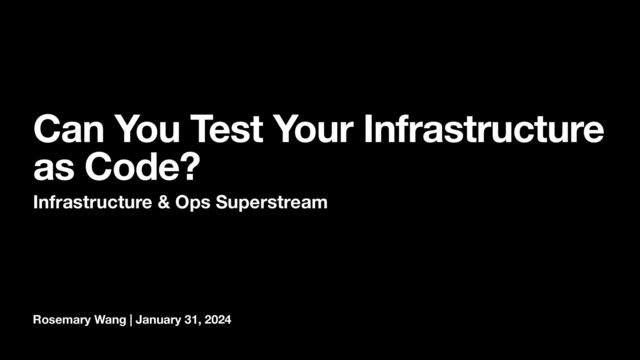 When you update your infrastructure as code modules and configurations and quickly push production changes, how do you know that your changes didn't break the system? Rosemary Wang discusses how to think about your infrastructure as code testing strategy and shows how some types of tests can flag potential misconfigurations to infrastructure as code before pushing to production. You'll learn about what kinds of tests are most effective for infrastructure as code and when it's worth the time to write them.