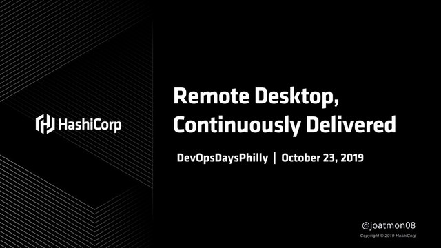 In this talk, we’ll apply infrastructure-as-code to create a continuously delivered remote desktop experience. While there are some limitations to a seamless user experience for a remote desktop, we’ll review tools allow us to automate creation and configuration and techniques to ensure it is built reliably. By applying infrastructure-as-code to remote desktop, we can create an immutable remote desktop image, deploy replicas based on our geographic location, and test if our development environment is ready for use.