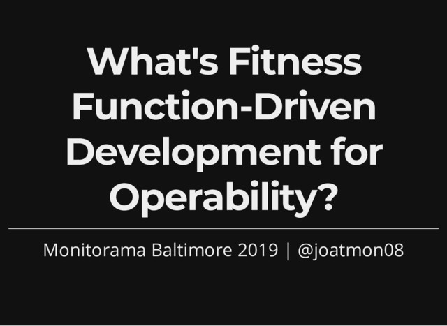 Fitness functions in evolutionary architecture allow us to optimize systems to fit our current capabilities. In this talk, we'll start with a basic introduction to the concept of evolutionary architecture and explain the idea of fitness functions. Then, we'll demonstrate an example of how we can use these fitness functions to drive an initial set of logs, alerts, dashboards, and metrics. Finally, we will do some refinement of each fitness function, accounting for alert fatigue and additional operational needs.