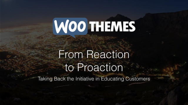 When customers begin using our tools, the questions pile up and it is easy to find yourself in a constant state of reaction to customer requests. At WooThemes we’ve made the bold move of supporting all paid users using a support platform. We acknowledge customer requests, questions and input and we want them to have a positive experience. At the same time scaling support has been a huge challenge and WooThemes has often found themselves snowed under in support, under capacity and reactive in our approach. In an attempt to stay on top of the growth we’ve begun taking some proactive approaches for several reasons: