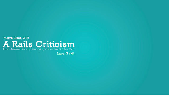 This talk will focus its attention on the Rails "Golden Path", the reasons to its success, the most common problems, and how its API can be improved.