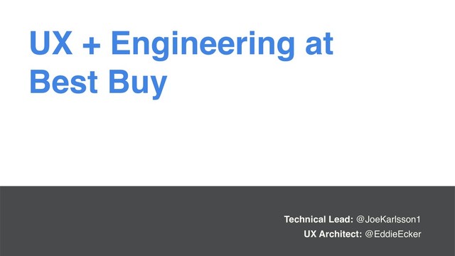 Designers and engineers are often seen as complete opposites. Designers are portrayed to be sensitive creatives, and engineers as cold logisticians. But this doesn’t have to be the case. In this talk, a software engineer and a UX Designer from Best Buy will come together in order to show you practical ways that you can collaborate together better and deliver amazing and beautiful products.