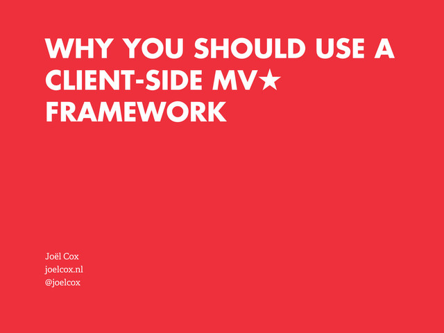 WHY YOU SHOULD USE A CLIENT-SIDE MV FRAMEWORK Joël Cox