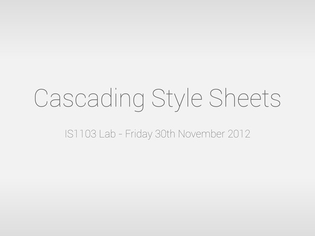 you to CSS (Cascading Style Sheets). Because I was away last week, there might be a bit of overlap with what you’ve already covered in this week’s lab session. That’s not necessarily a bad thing, CSS is hugely important to understand, and not just for IS1103...