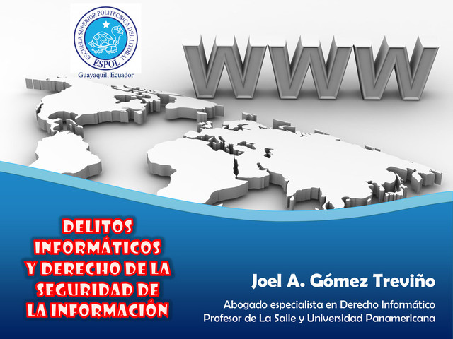 Confidencialidad Industrial • Contra las empresas, instituciones y gobierno • Virus • Spyware / Malware • Sniffing / packet sniffers • Keyloggers • Hacking / Cracking • Ingeniería Social • Robo informático de información confidencial o secretos industriales • Contra las personas • Robo de identidad • Phishing • Carding y clonación • CiberAcoso • “Spamming” • Difamación y calumnia en redes sociales y cadenas de correos electrónicos • Pornografía infantil • Corrupción de menores @JoelGomezMX @LexInformatica