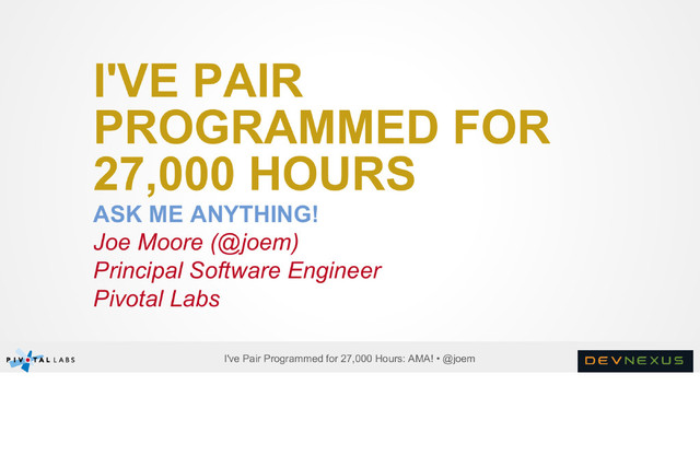 I gave this presentation at DevNexus 2014 in Atlanta, GA. The session a Q&A session, so the slides are bit useless, but here they are anyway.