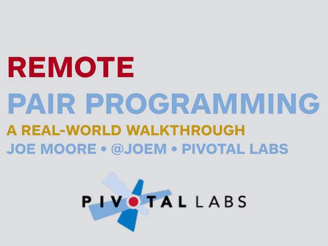 Remote pair programming enables distributed teams take advantage of the benefits of pair programming. Joe has remote pair programmed full time since 2010 across many different operating systems and time zones. Joe will walk through both the non technical and technical skills for remote pairing, including how to get started in common and not-so-common situations.