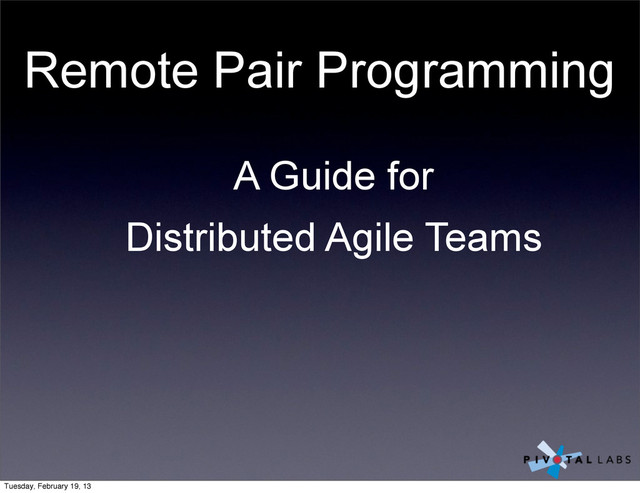 Works across Windows, Mac, Linux No VPN Some (usually) punch through firewalls, some don’t In Web Browser Quickest way to get a session going, but sometimes limiting 2-Way Control Presentation software only allows the host to control Tuesday, February 19, 13