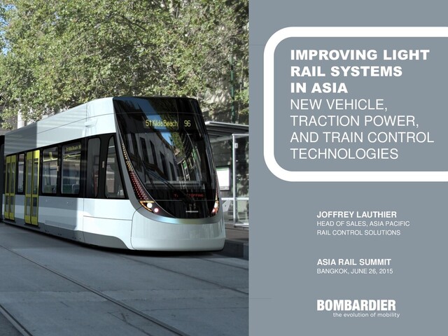 in Asia Electric tram system by Bangkok Tramways Co. PAGE 2 | ASIA RAIL SUMMIT 2015 | IMPROVING LIGHT RAIL SYSTEMS IN ASIA: VEHICLES, TRACTION POWER AND TRAIN CONTROL 10 cities 1900 37 cities 1910 55 cities 1920 76 cities 1930 Cumulated number of cities in Asia over time with electric tramways Cities considered: Akita, Asahikawa, Bangkok, Beijing, Busan, Chennai, Colombo, Dalian, Delhi, Fukuoka, George Town, Gifu, Hachiōji, Hakodate, Hanamaki, Hanoi, Harbin, Hiroshima, Ho Chi Minh City, Hong Kong, Ichinomiya, Ise, Iwakuni, Jakarta, Kagoshima, Kanazawa, Kanpur, Kawagoe, Kitakyūshū, Kobe, Kōchi, Kolkata, Kumamoto, Kure, Kurume, Kuwana, Kyoto, Mandalay, Manila, Matsumoto, Matsushima, Matsuyama, Mito, Mumbai, Nagasaki, Nagoya, Naha, Narita, Nikko, Odawara, Oita, Okayama, Okazaki, Ōmuta, Osaka, Pyongyang, Saga, Sapporo, Sendai, Seoul, Shanghai, Shenyang, Shimizu, Shimonoseki, Shizuoka, Singapore, Surabaya, Takamatsu, Tianjin, Tokyo, Toyama, Toyohashi, Wakayama, Yangon, Yokohama, Yonago.