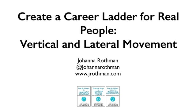9. © 2021 Johanna Rothman @johannarothman Career Ladders Serve Several Purposes