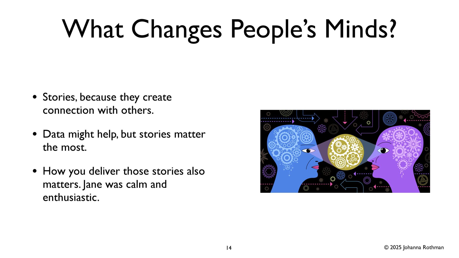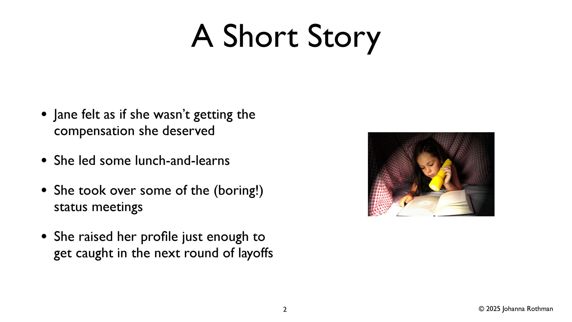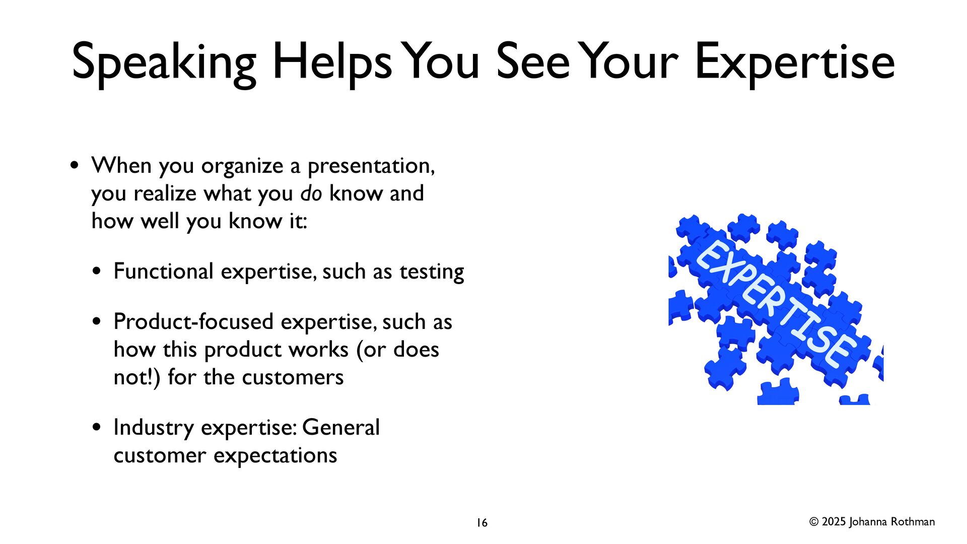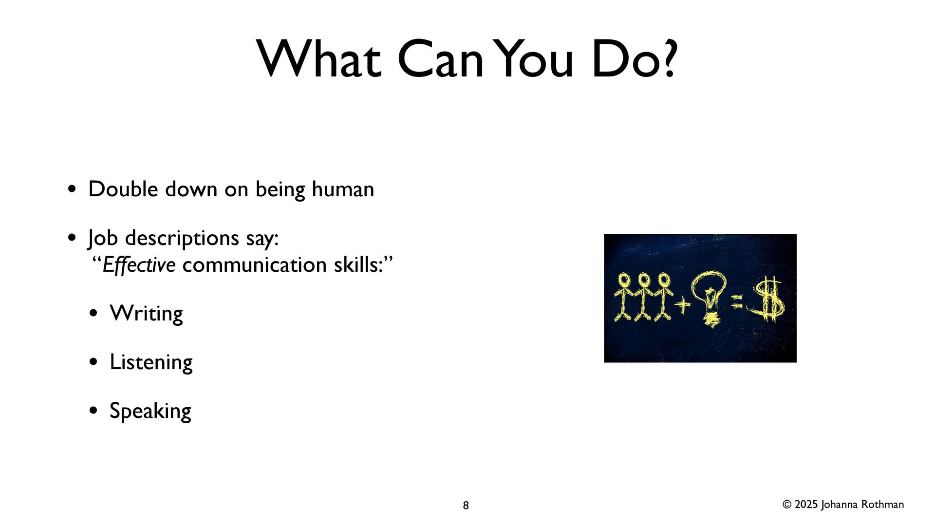 As a consultant, I’ve spoken professionally since 1997, all to show my expertise and value. Now, in 2025—and beyond—we all need to show our value to all kinds of managers. Not just hiring managers, but managers who think they can reduce headcount because of AI. Those managers do not realize AI can be a helpful tool, but only humans can create great products customers will buy.