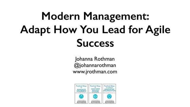 Agile approaches have downplayed the role of management. Too many people say, “We don’t need no stinkin’ managers.” On the contrary. We need modern managers to create and refine the agile culture and to enable leaders at all levels. Let’s invite—and make it possible for managers to become modern managers. When they change, we can create an agile culture.