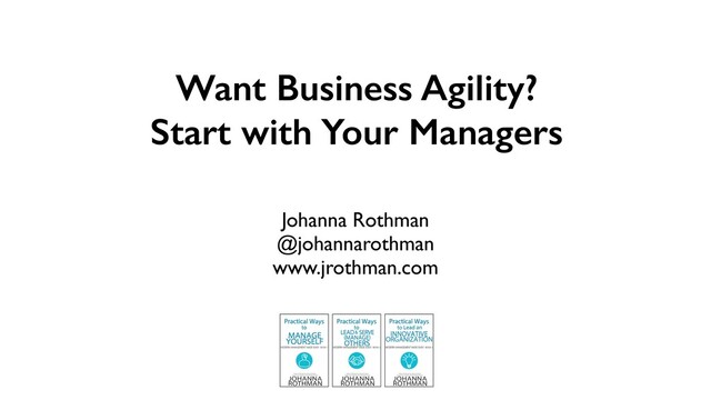 Too many organizations think they can reap the benefits of business agility with a framework or tools. However, frameworks and tools don't change the organizational culture. Instead of forcing managers into silos, what if we focused on creating collaborative management teams? We can change what we reward, support managers as they change their roles, and create business agility.