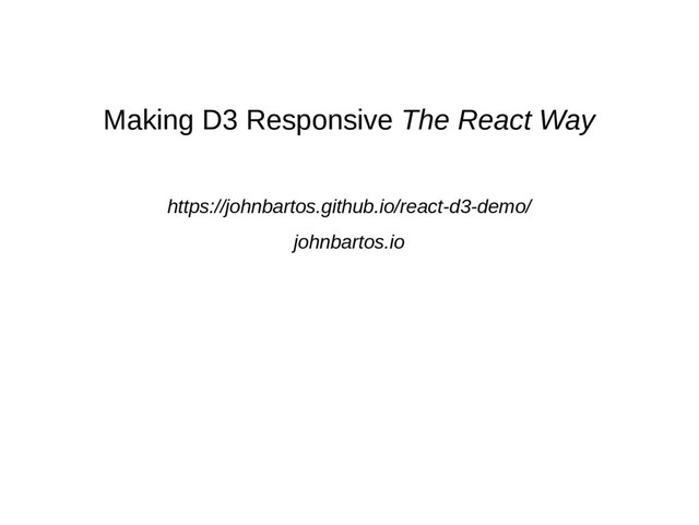 Making D3 Responsive The React Way https://johnbartos.github.io/react-d3-demo/ johnbartos.io