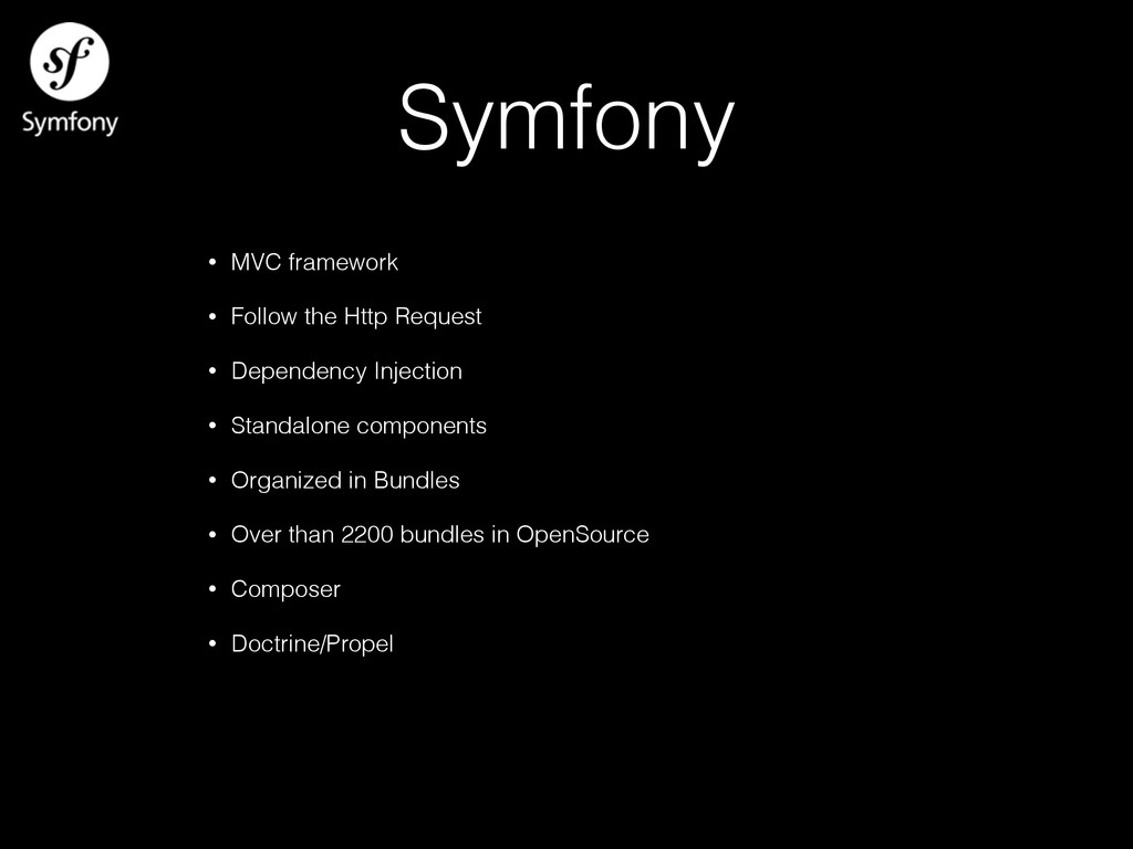 Dependency Injection • Standalone components • Organized in Bundles • Over than 2200 bundles in OpenSource • Composer • Doctrine/Propel