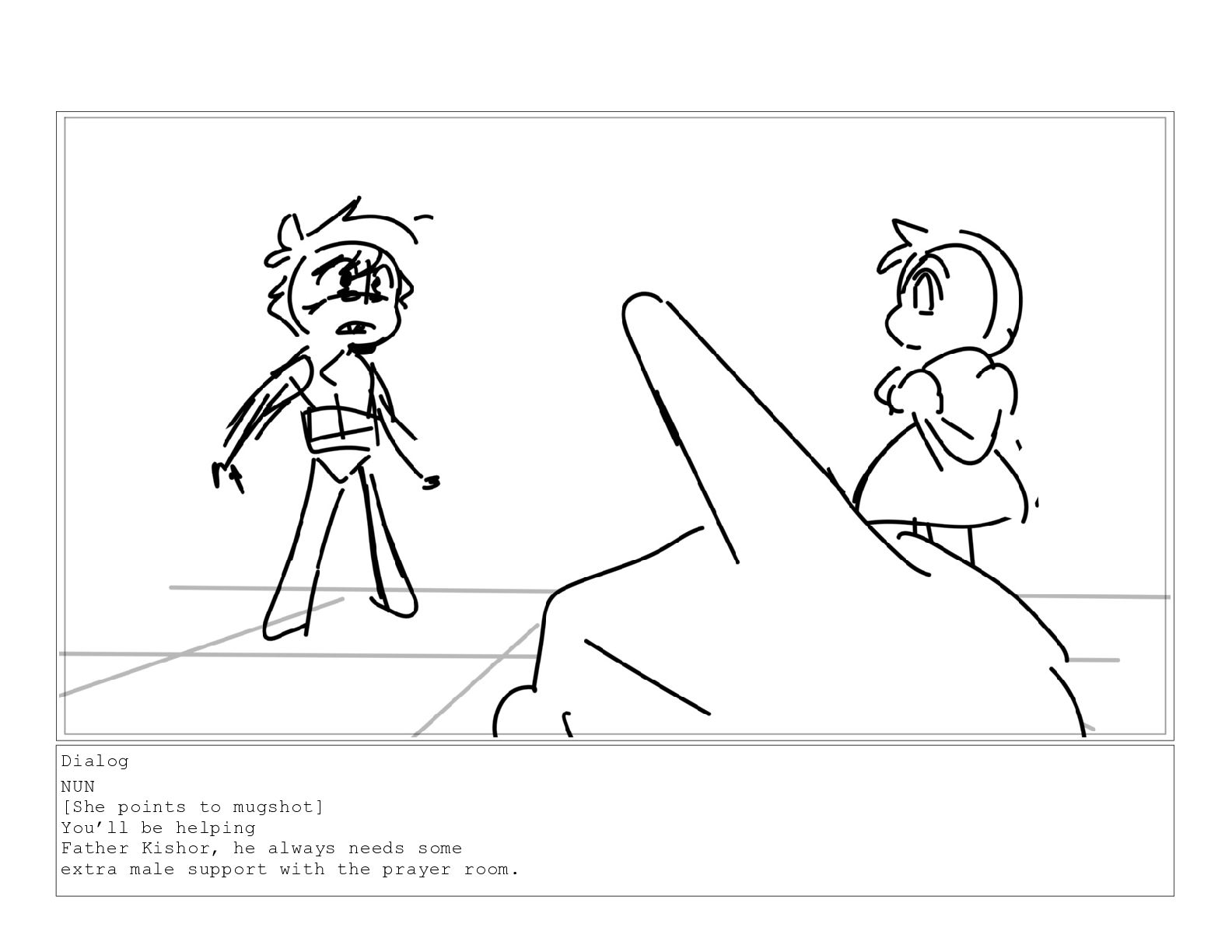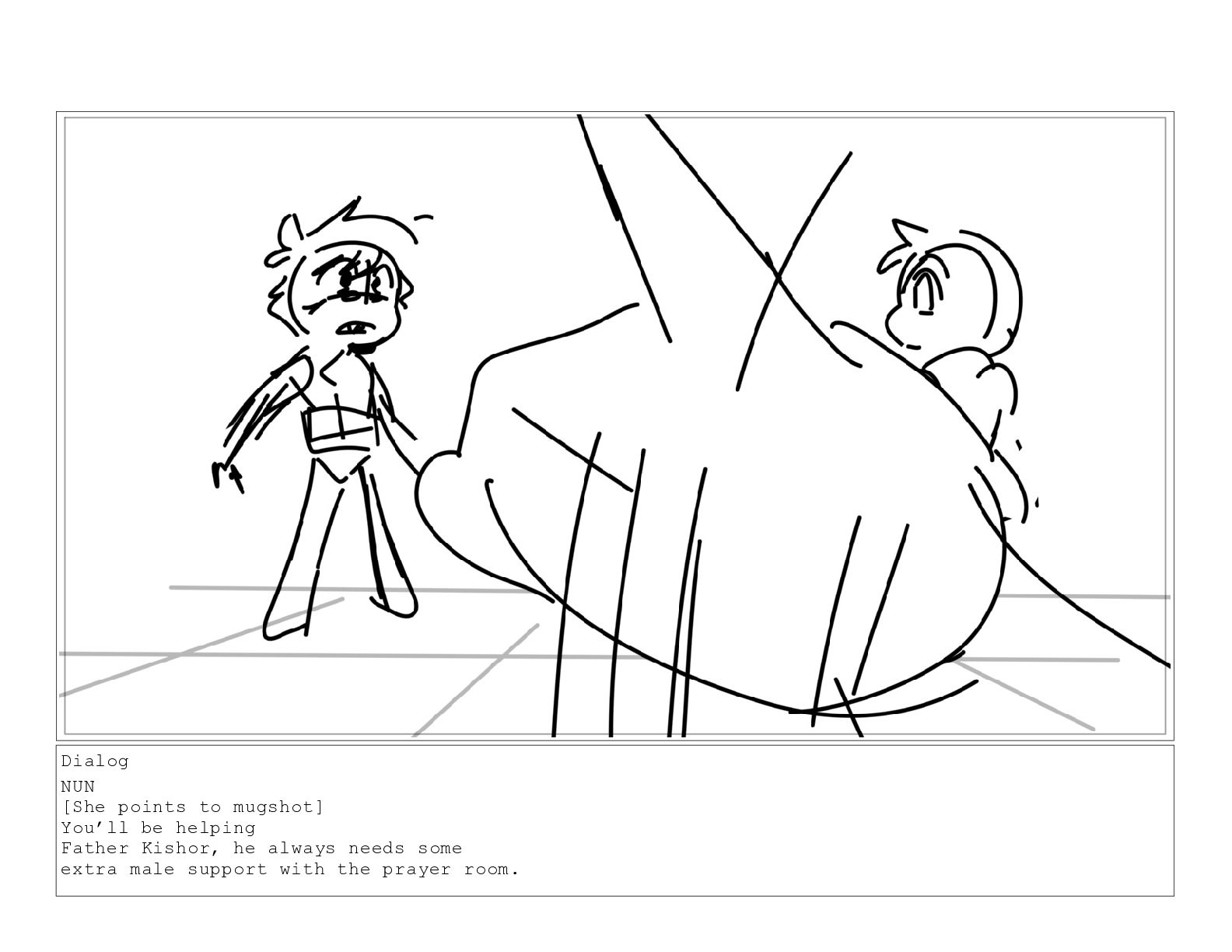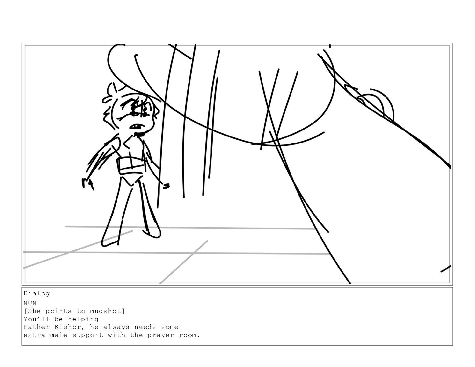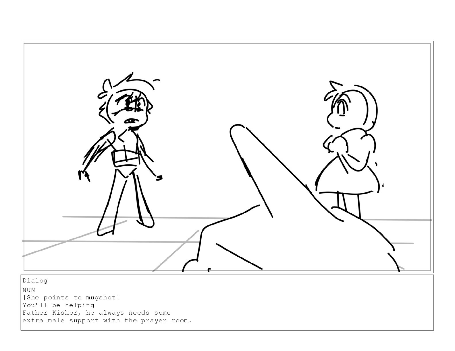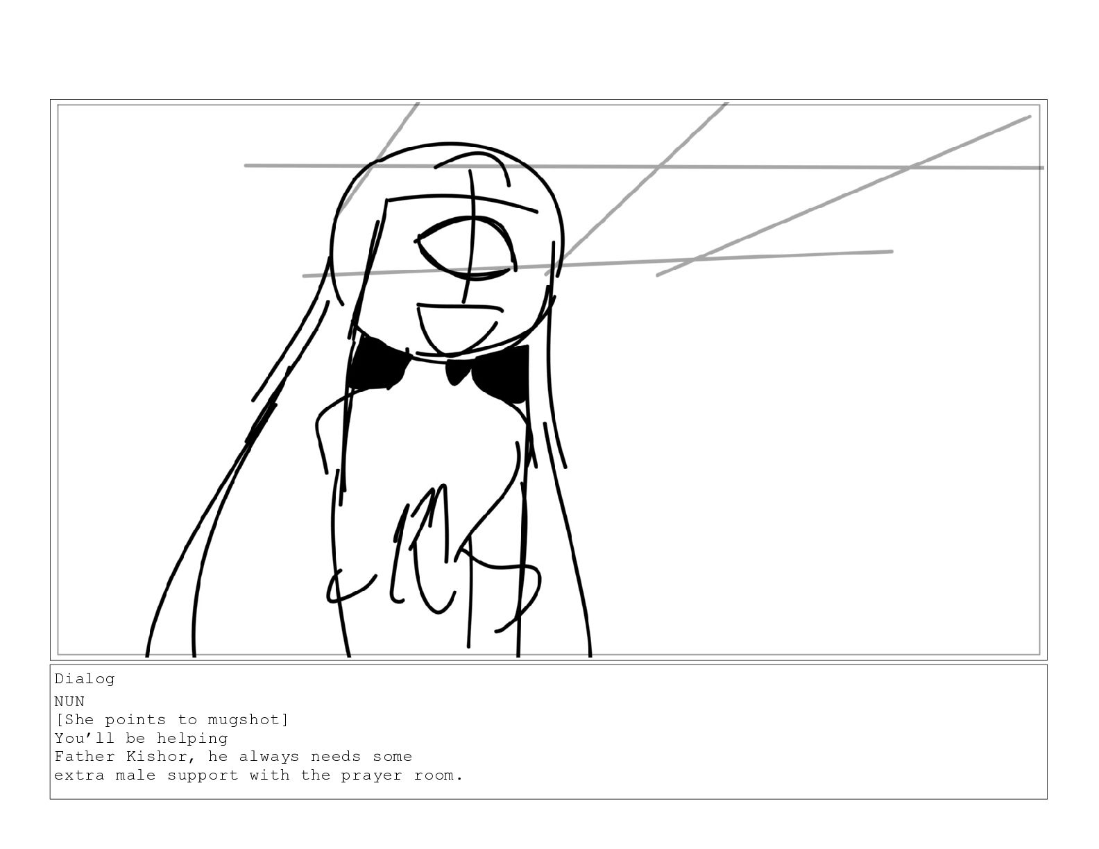 Dialog NUN [She points to mugshot] You’ll be helping Father