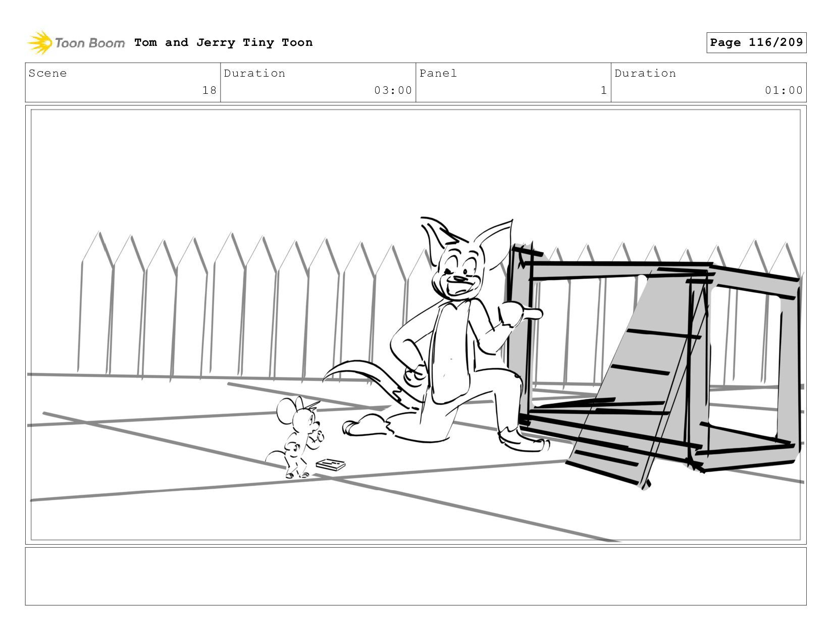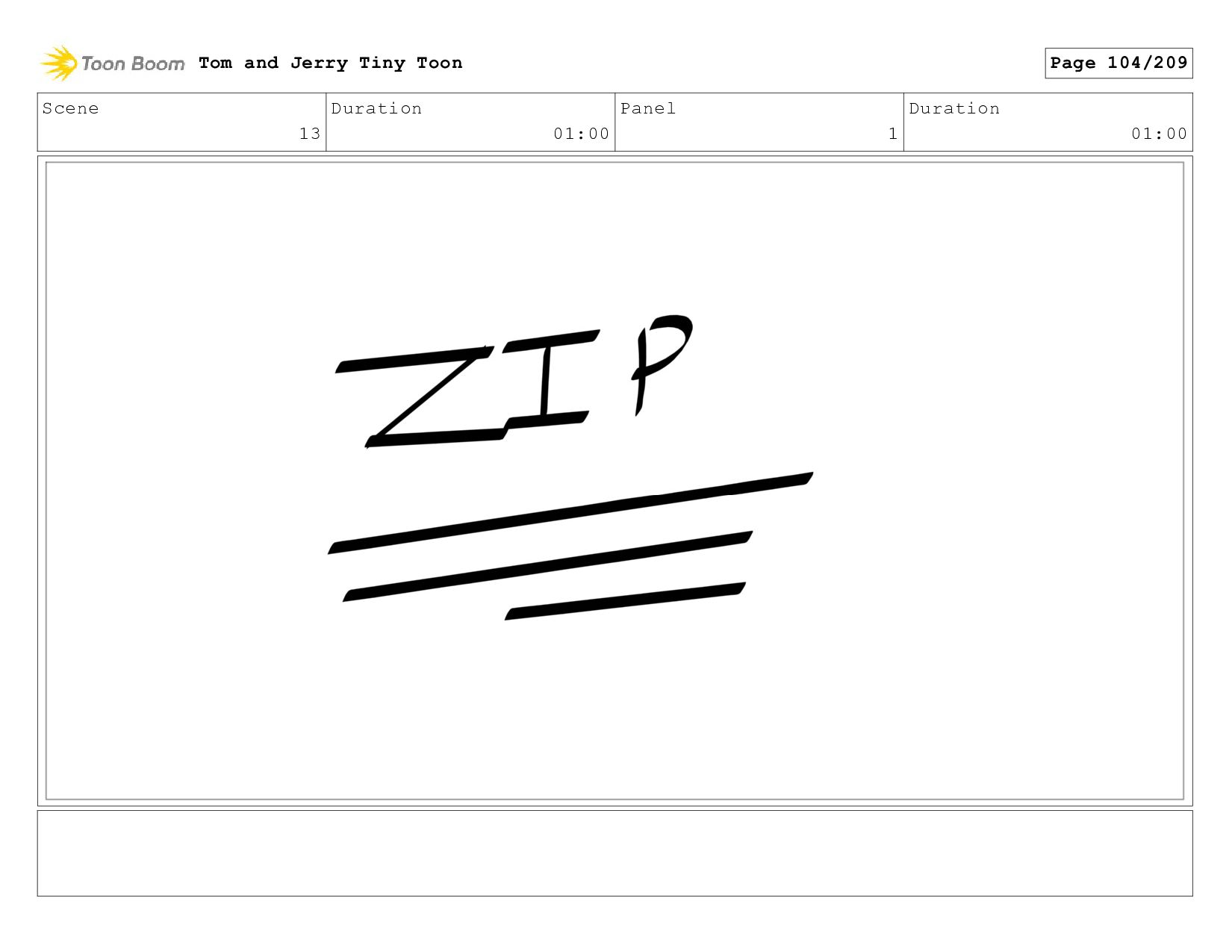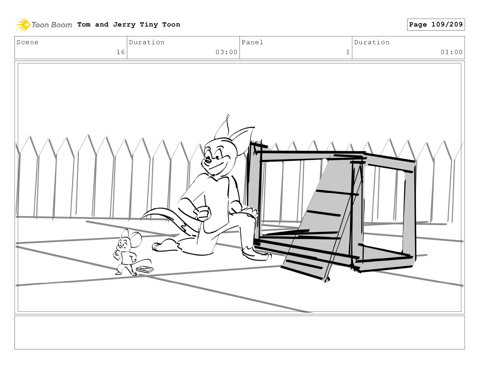 Scene 28 Duration 10:00 Panel 1 Duration 01:00 Tom and