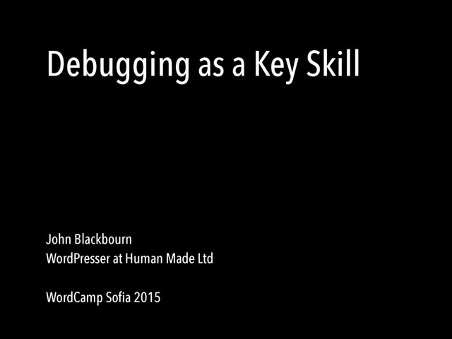My talk from WordCamp Sofia 2015 and WordCamp Milano 2016 about why, as a developer, you should treat debugging as a key skill that you should practice and become proficient at. I talk about some tools and processes for modern and efficient debugging of the front end and the back end, and how processes such as testing and version control can aid your debugging.