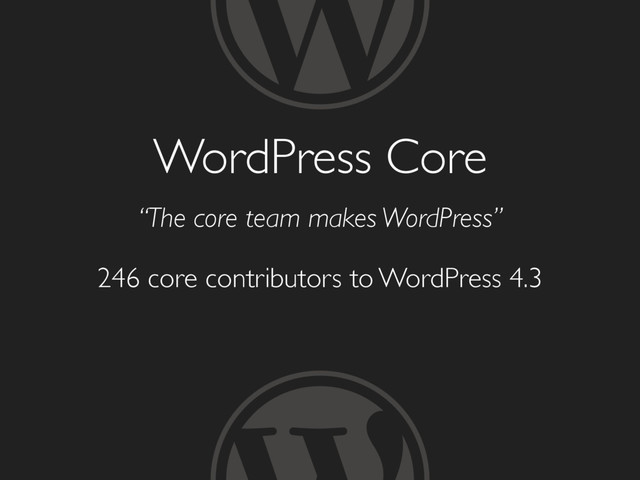 WordPress Core “The core team makes WordPress” 246 core contributors