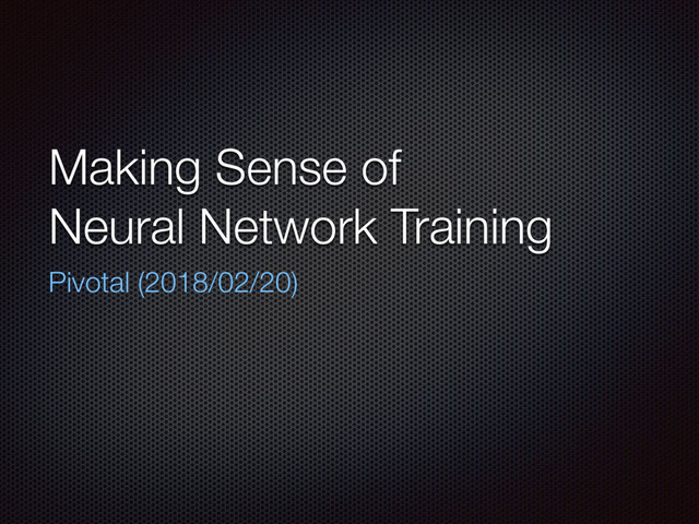 Making Sense of Neural Network Training Pivotal (2018/02/20)