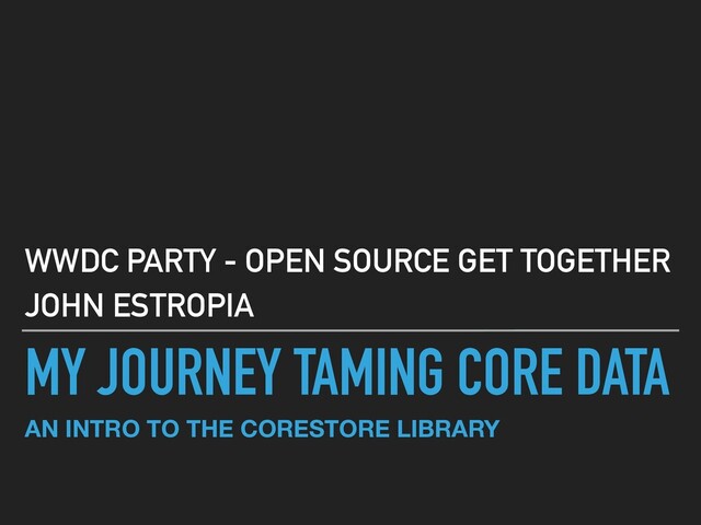 and NSManagedObject ▸ Need to sync *.xcdatamodeld (XML) files and NSManagedObject subclass source files ▸ CoreStore has a pure-swift way to create models