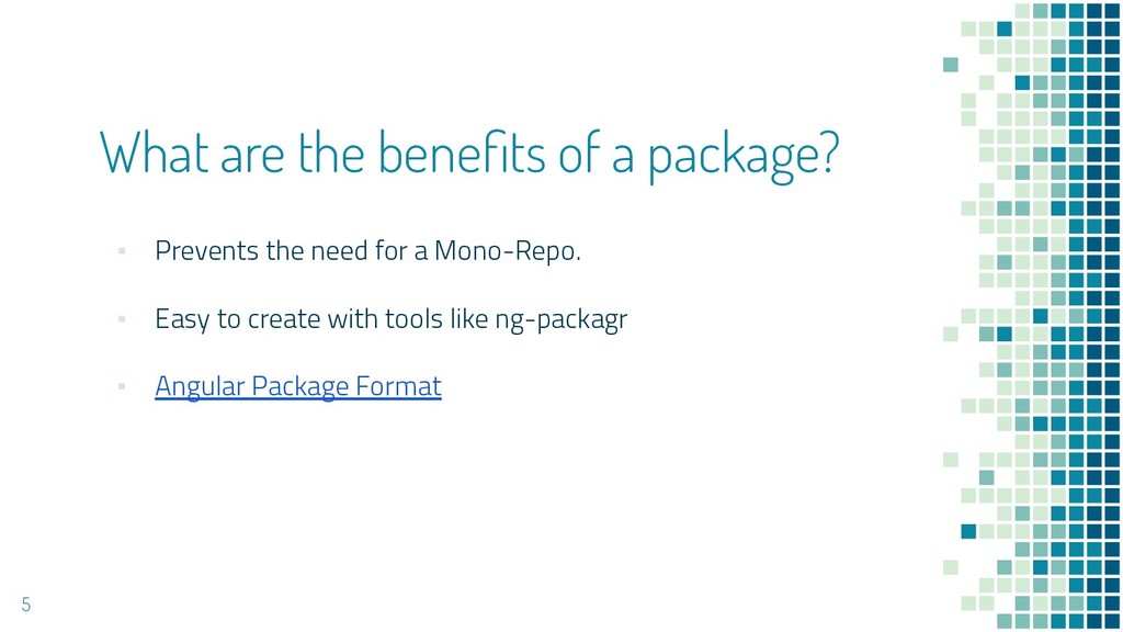 We’ll start with our story of how we leveraged shared packages across multiple client systems at our current company. Then we will demonstrate, with a real example, how you can package and distribute your Angular code.