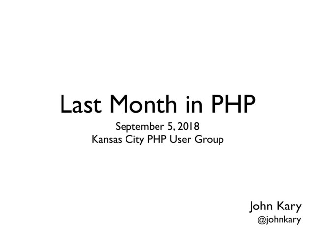 Last Month in PHP September 5, 2018 Kansas City PHP