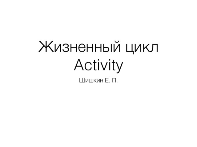 onRestart() Вызывается в тот момент когда активность была остановлена и снова переводится на передний план. • onStart() Вызывается, когда Activity становится видима для пользователя. • onResume() Вызывается когда Activity готова к взаимодействию с пользователем. • onPause() Вызывается когда пользователь решает перейти к другой Activiy. • onStop() Вызывается когда Activity становится невидимой пользователю. • onDestroy() Вызывается когда Activity должна быть уничтожена.