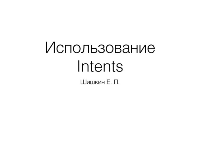 имя класса). Как правило, в приложение используются такого типа Intents. • Неявные Intents Не указывают конкретный компонент, вместо этого объявляют действие (Action) для выполнения. В основном используется для запуска компонентов из других приложений.