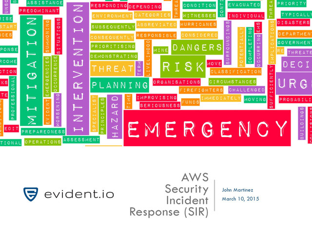 ▪ About Evident.io ▪ Security incident checklist What you are responsible for in AWS What AWS will be looking for from you ▪ Top 10 Security Best Practices ▪ How Evident.io Can Help 2