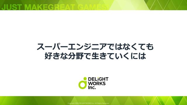 Copyright 2018 DELiGHTWORKS Inc. All Rights Reserved. スーパーエンジニアではなくても 好きな分野で生きていくには