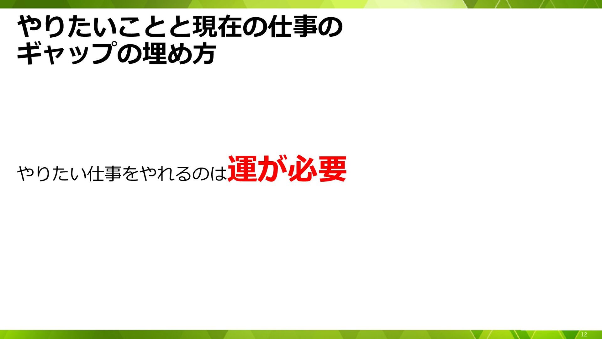 やりたいことと現在の仕事の ギャップの埋め方 やりたい仕事をやれるのは 運が必要 12
