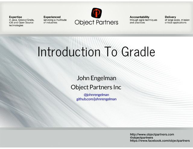 Consultants Minneapolis, MN & Omaha, NE Chicago, IL & Denver, CO Average tenure > 5 years Founded in 1996 objectpartners.com @objectpartners objectpartners.com/blog